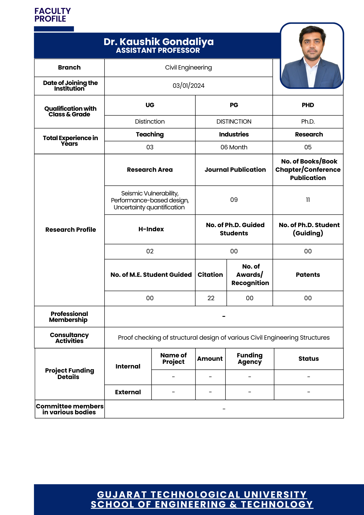 Office Address : School of Engineering and Technology (Academic Block-5), Gujarat Technological University, Chandkheda-382424, Ahmedabad.